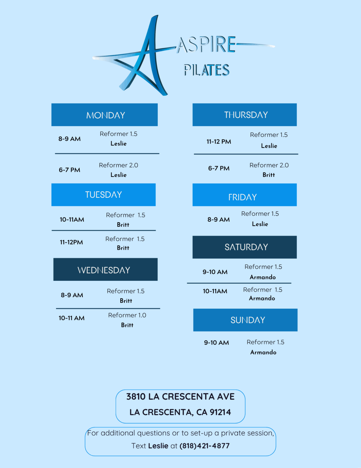 ASPIRE Pilates is conveniently located minutes off the 210 Freeway in La Crescenta/Verdugo City.
